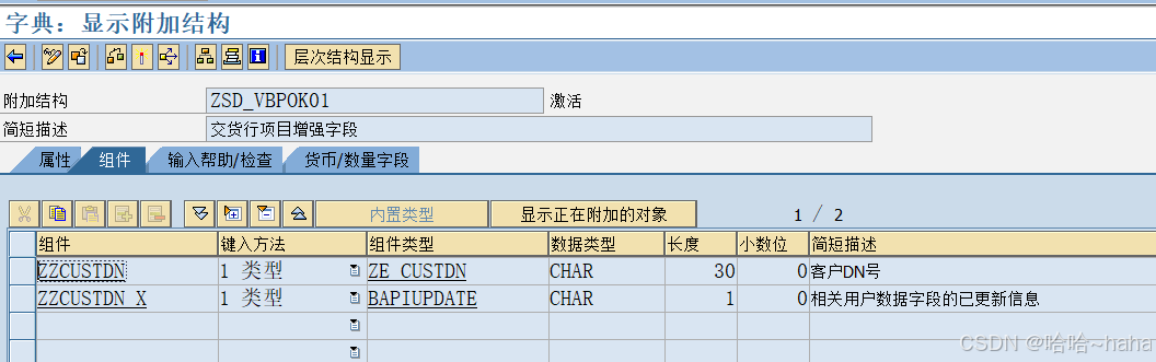 - 最后在调用bapi时,将自定义增强字段传入extension2 参数中