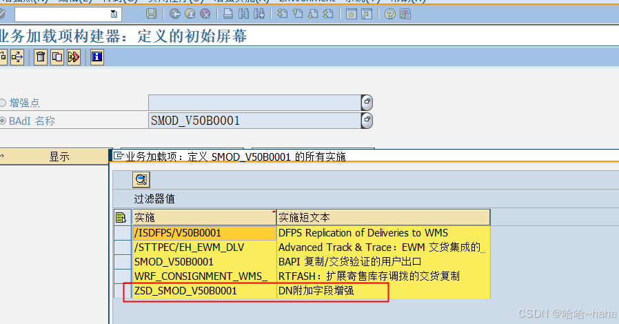 - 再接口IF_EX_SMOD_V50B0001中EXIT_SAPLV50I_010将对应参数传入标准程序内存中,代码如下