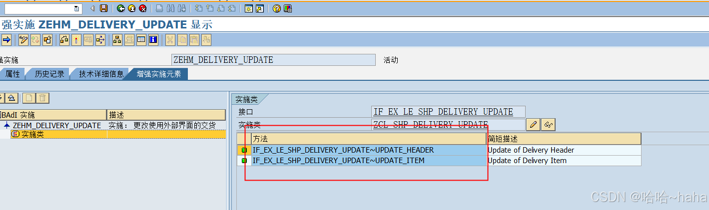 - 对BADI->LE_SHP_DELIVERY_UPDATE新增实施,再IF_EX_LE_SHP_DELIVERY_UPDATE~UPDATE_HEADER