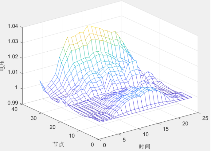 电压变化图:图一显示了不同节点在不同时刻的电压变化情况。实验表明,加入分布式电源和储能系统后,电压波动得到显著抑制。