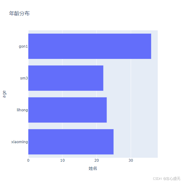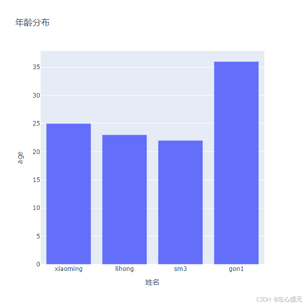 fig.update_layout(width=600,height=600,title='年龄分布',xaxis=dict(title='姓名'),yaxis={'title':'age'})