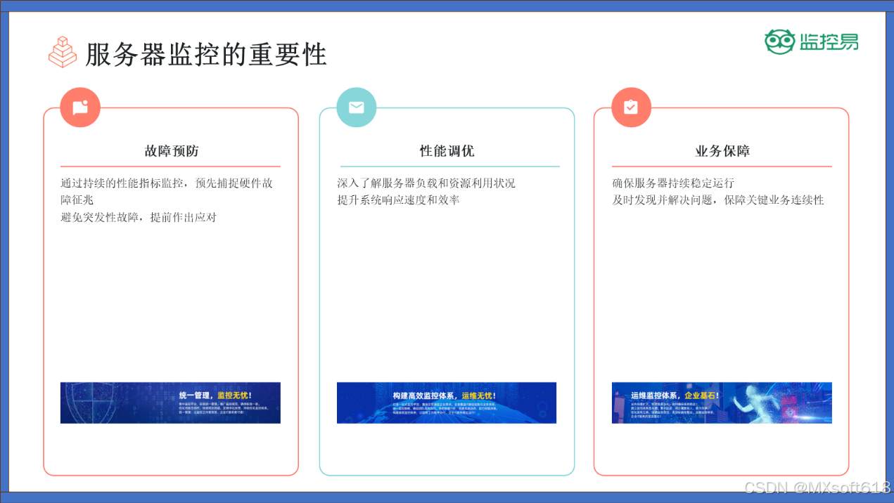 - 建立监控体系:构建多层次、多维度的监控体系,覆盖服务器性能、状态、资源、健康、安全等各个方面。
