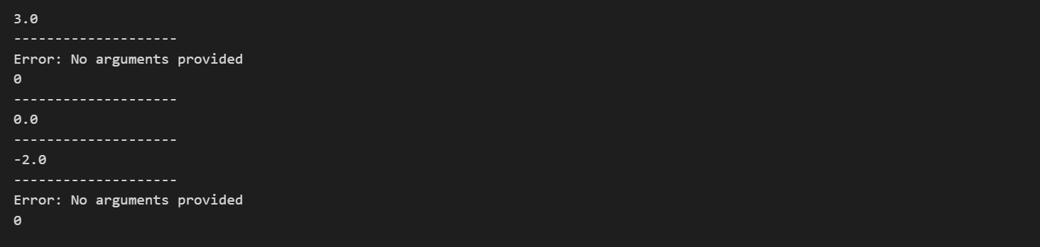 #传入字母,会报错def calculate_average(*args):if len(args) == 0:return 0return sum(args) / len(args)print(calculate_average(1, 2, 3, 4, 5)) # 正常情况
