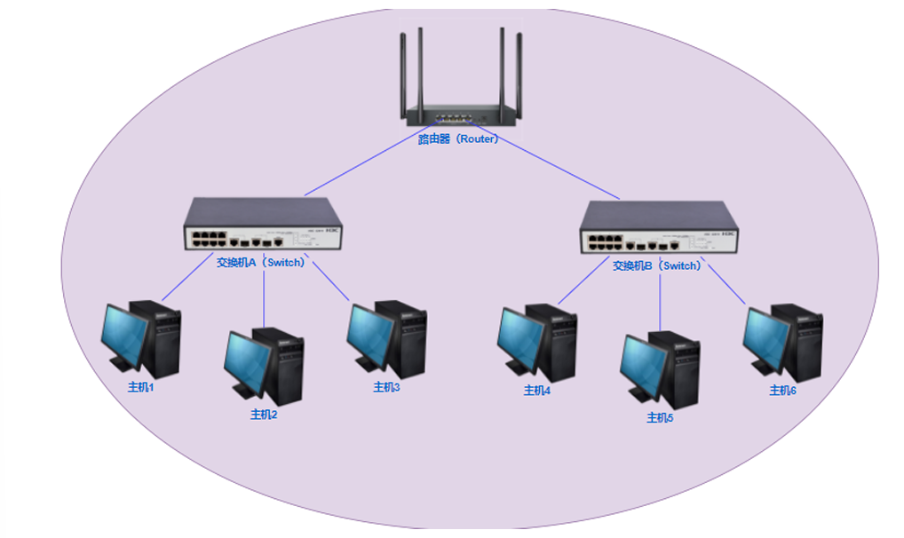 交换机:上面所有的口都是等价的,电脑可以连到任意的口上,连上的电脑都构成了局域网。