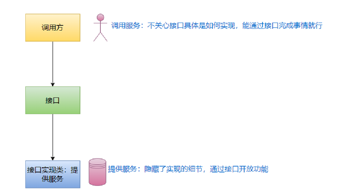 对于使用方来说,并不关心提供方是如何实现的,只需要使用接口即可。