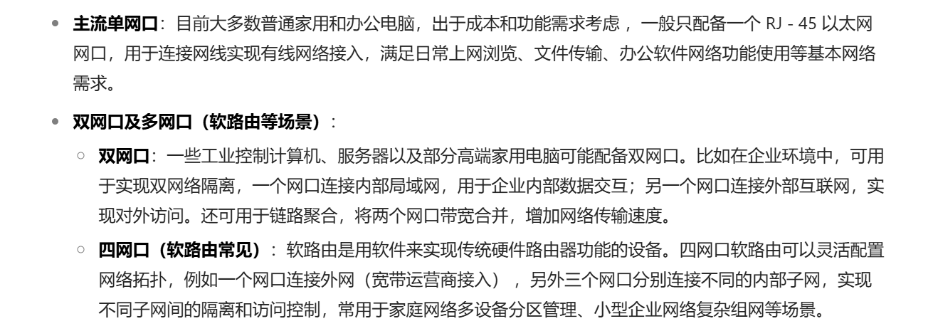 上面这个图片有点小问题,主流的电脑都是一个网口的,但是有些电脑,是带有双网口甚至四网口的(软路由)