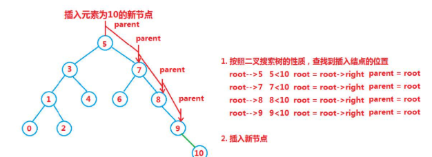 对于二叉树来说,插入的本质,还是查找,通过查找的方式,确定新元素的所在位置