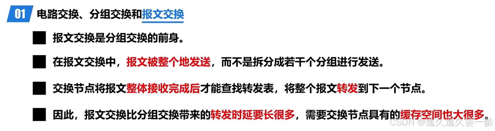- 类似分组交换,但是对报文的大小没有限制,这就要求交换节点需要有较大的缓存空间。