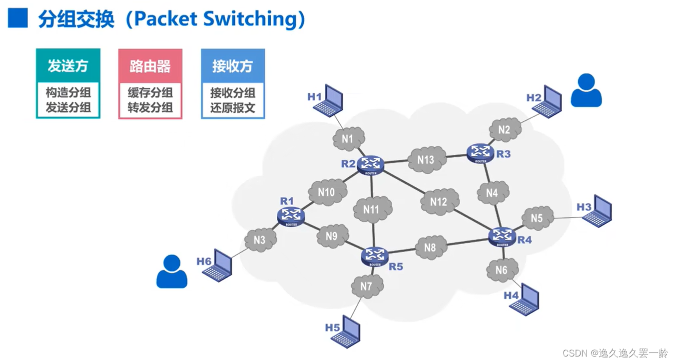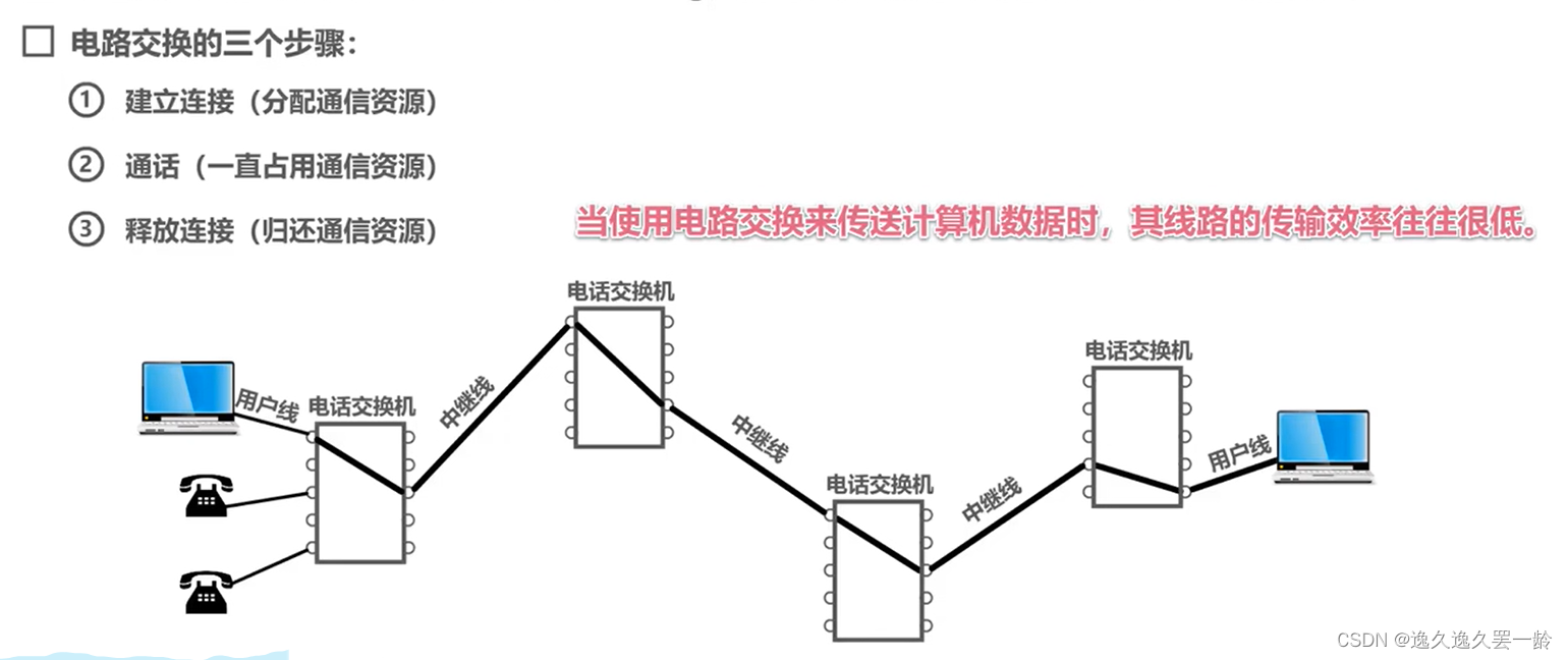 - 主要用于早期的电报通信网。现在比较少使用,通常被更加先进的分组交换所取代。