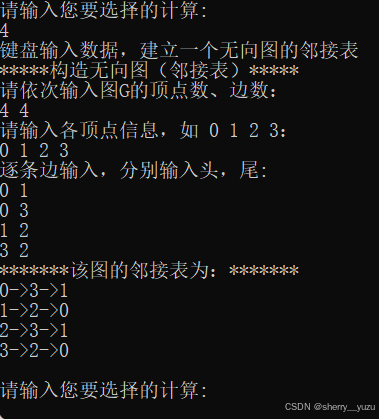 4. 键盘输入数据,建立一个无向图的邻接表: