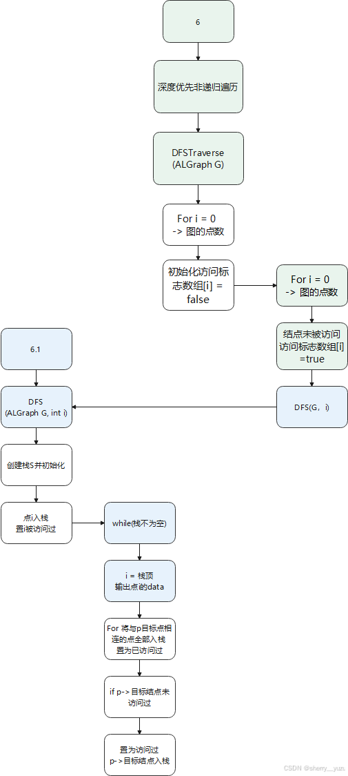 5. 邻接表存储的无向图的深度优先非递归遍历: