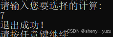 分析:输入数字7后进入该退出系统的功能,提示用户退出成功。退出成功后,不会再出现提示用户继续输入想要选择的运算。