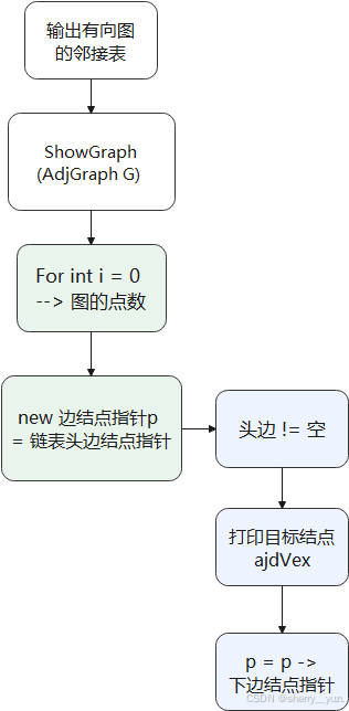 {for (int i = 0;i < G.vexNum;i++){cout << G.VexList[i].data;arcNode* p = G.VexList[i].adjArc;while (p != NULL){cout << " -> " << p->ajdVex;p = p->nextArc;}cout << "\n";}