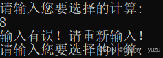 分析:输入其他数字7后进提示用户输入有误,请重新输入。并再次提示用户继续输入想要选择的运算。