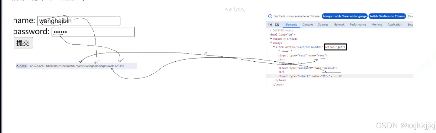 如果我们要提交参数给我们的服务器,我们使用get方法的时候,我们提交的参数是通过URL提交的!