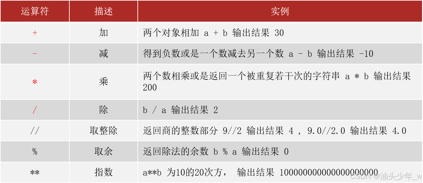 | 字符串(文本) | "键盘敲烂,月薪过万" | 程序中需要加上双引号来表示字符串 |