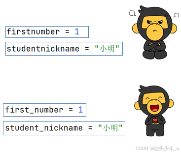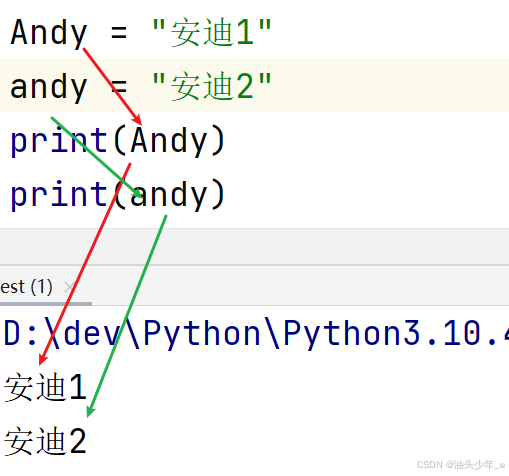 变量名称:每一个变量都有自己的名称,称之为:变量名,也就是变量本身