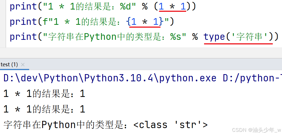 表达式就是一个具有明确结果的代码语句,如 1 + 1、type(“字符串”)、3 * 5等