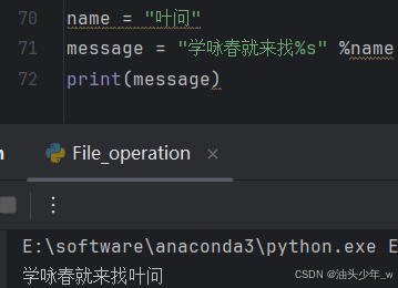# 方式3:使用%s %d %f占位符的方式格式化输出字符串
