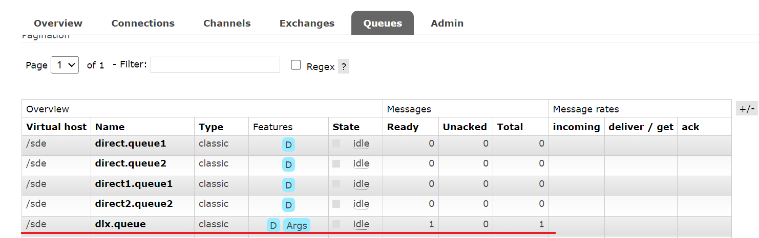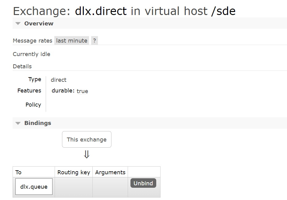 类似上述方式;创建 dlx.direct 交换机并绑定 dlx.queue
