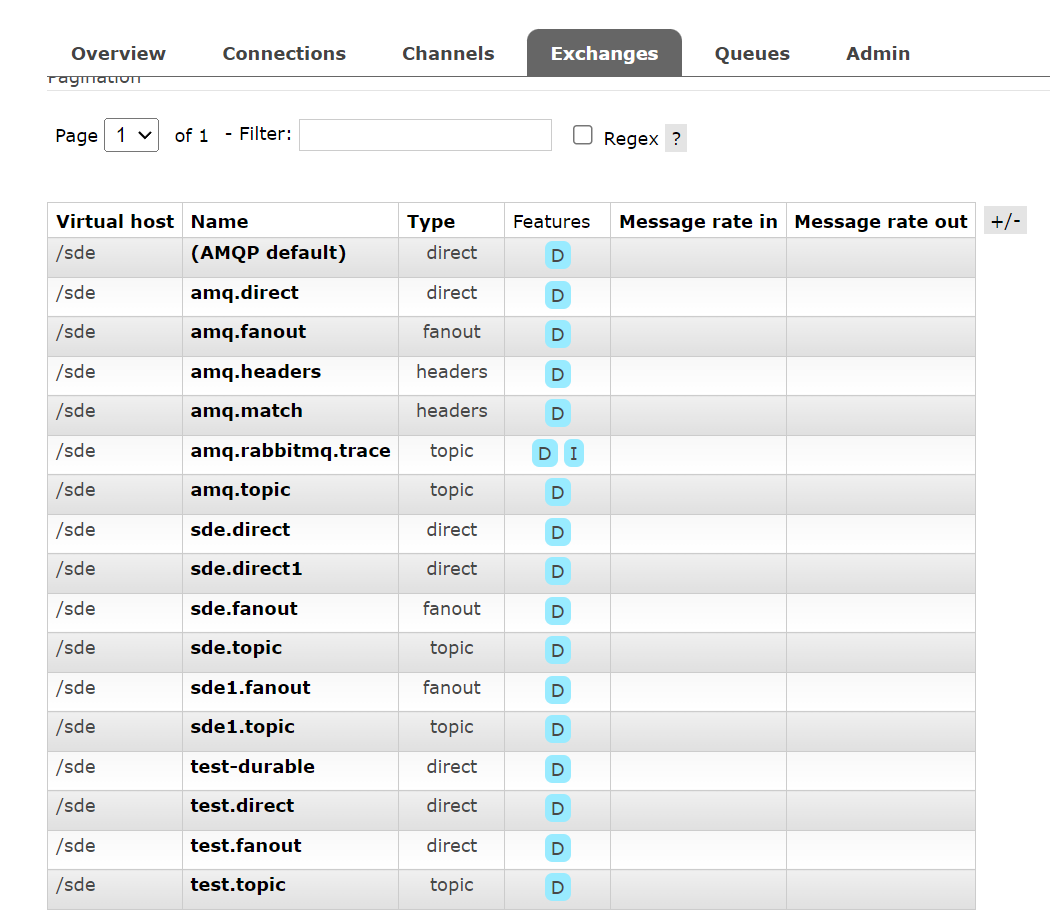 测试: 可以创建一个名 test1 的交换机;然后设置为 Transient ,再重启 mq 之后查看;它已经不存在,说明它是临时的,重启之后就不存在。